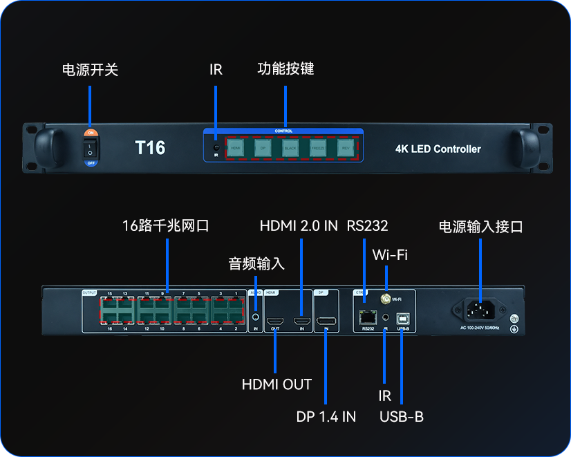 Wi-Fi、USB-B 、RS232、IR(选配)