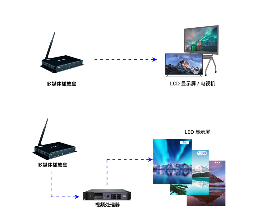 视频、图片、文本、动画字、时钟、流媒体、计时、计数、天气、表格等