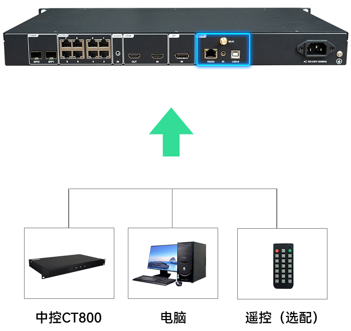 USB-B 、Wi-Fi、RS232、IR(选配)