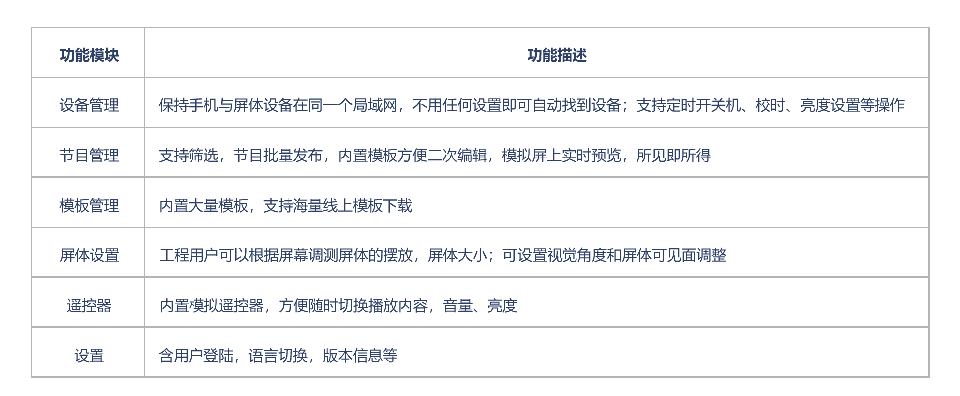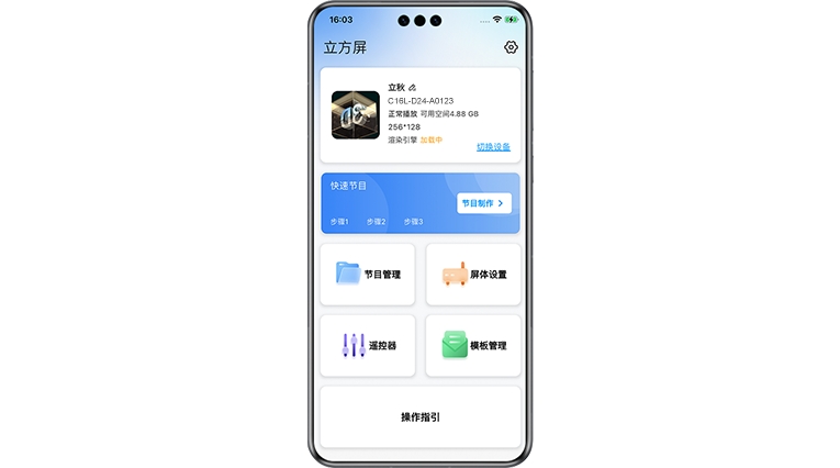 节目制作、节目管理、屏体设置、模板管理等功能模块化布局