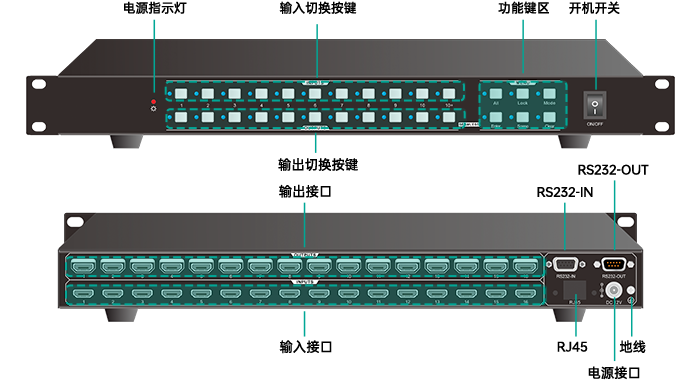 双向串口控制、面板按键控制,可选配网口控制